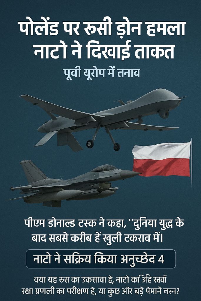 पोलैंड पर ड्रोन हमले की यह घटना रूस-नाटो संबंधों में नया तनाव लेकर आई है। यह न केवल यूरोपीय सुरक्षा व्यवस्था के लिए चुनौती है, बल्कि आने वाले समय में वैश्विक भू-राजनीति का रुख भी तय कर सकती है। सवाल यह है कि क्या यह केवल “एक और उकसावा” है या यूरोप को बड़े संघर्ष की ओर धकेलने वाला संकेत।